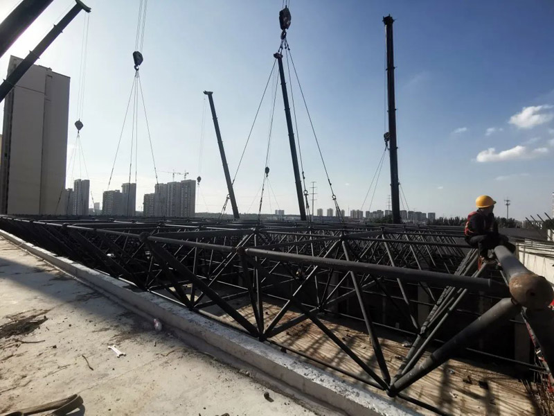 本工程為螺栓球節(jié)點正方四角錐網架,其材質選用GB699中的45號鋼。螺栓球直徑zui大為?250mm,zui小直徑?120mm。網殼桿件采用直縫或無縫焊接鋼管,材質為Q235-B,桿件zui小型號為?60*3.5,桿件zui大型號為?219*16。高強螺栓選用40Cr,對于M12-36的高強螺栓強度等級10.9S,對于M39-64的性能等級9.8S。支座底板、墊板選用Q355-B鋼。焊條型號Q235鋼之間E43系列;Q235鋼與鋼Q355之間E43系列。